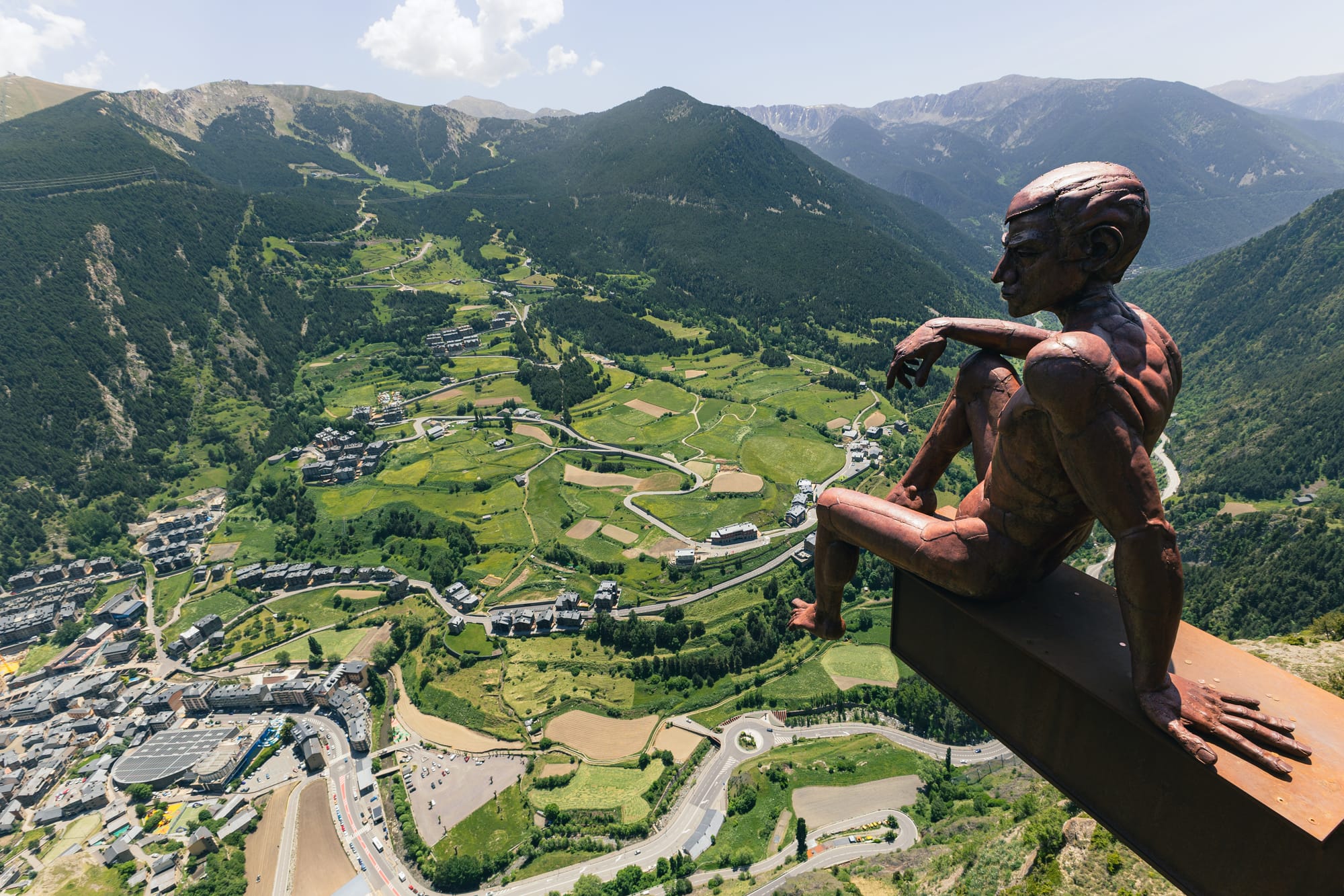 Las vistas alcanzan los valles del Montaup y el Valira d'Orient, con Soldeu y Encamp al fondo. Al final de la plataforma, una escultura de un pensador sentado sobre una viga, obra de Miguel Ángel González, añade un punto de reflexión al conjunto. Ambas atracciones pueden visitarse con un ticket combinado.