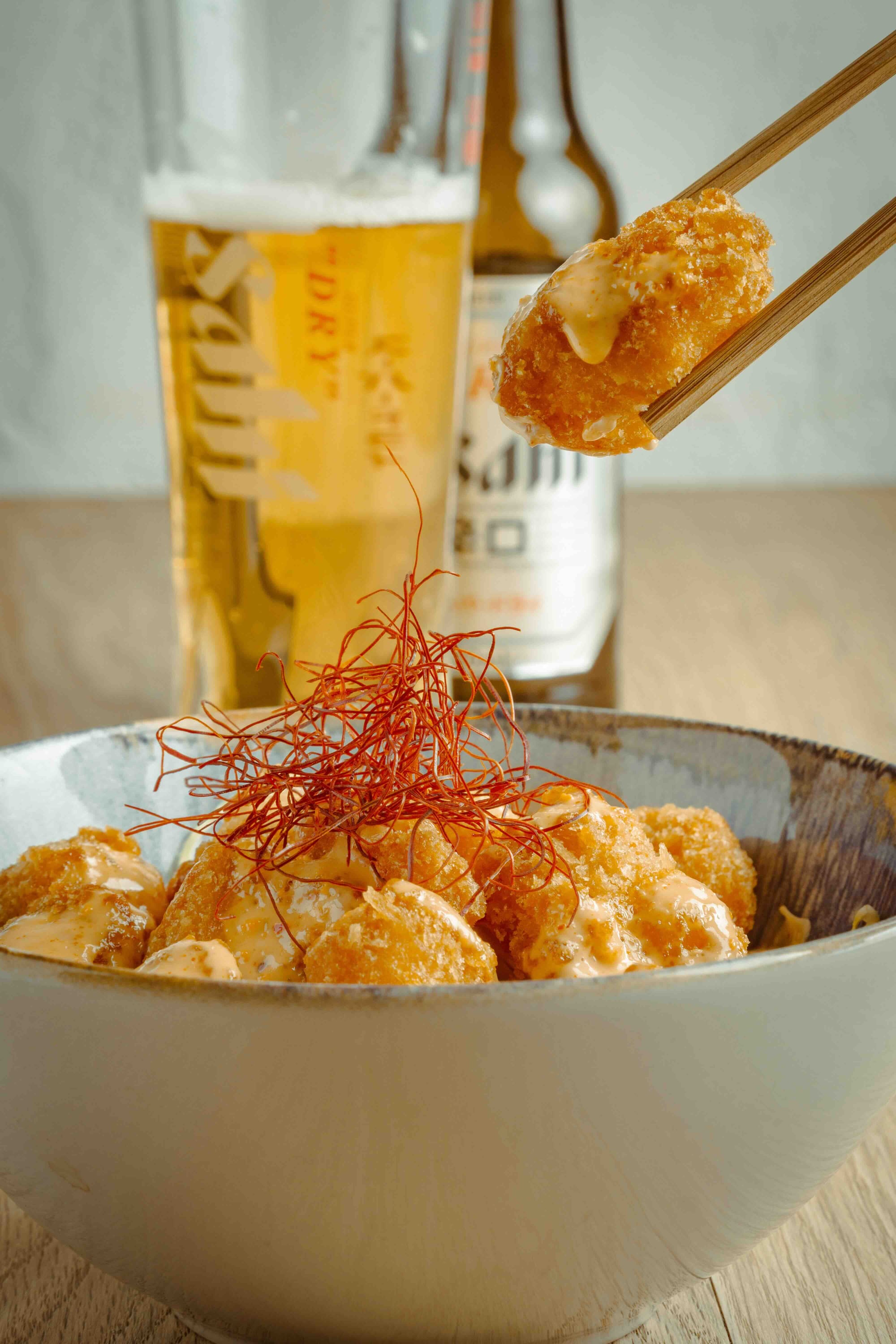 Se nota en el ambiente de ambos locales y se ve de forma clara en platos como las smash gyozas (empanadillas orientales literalmente aplastadas) de vegetales, pollo o ternera. También en los sando (sándwiches japo) con rellenos diversos empanados en panko.