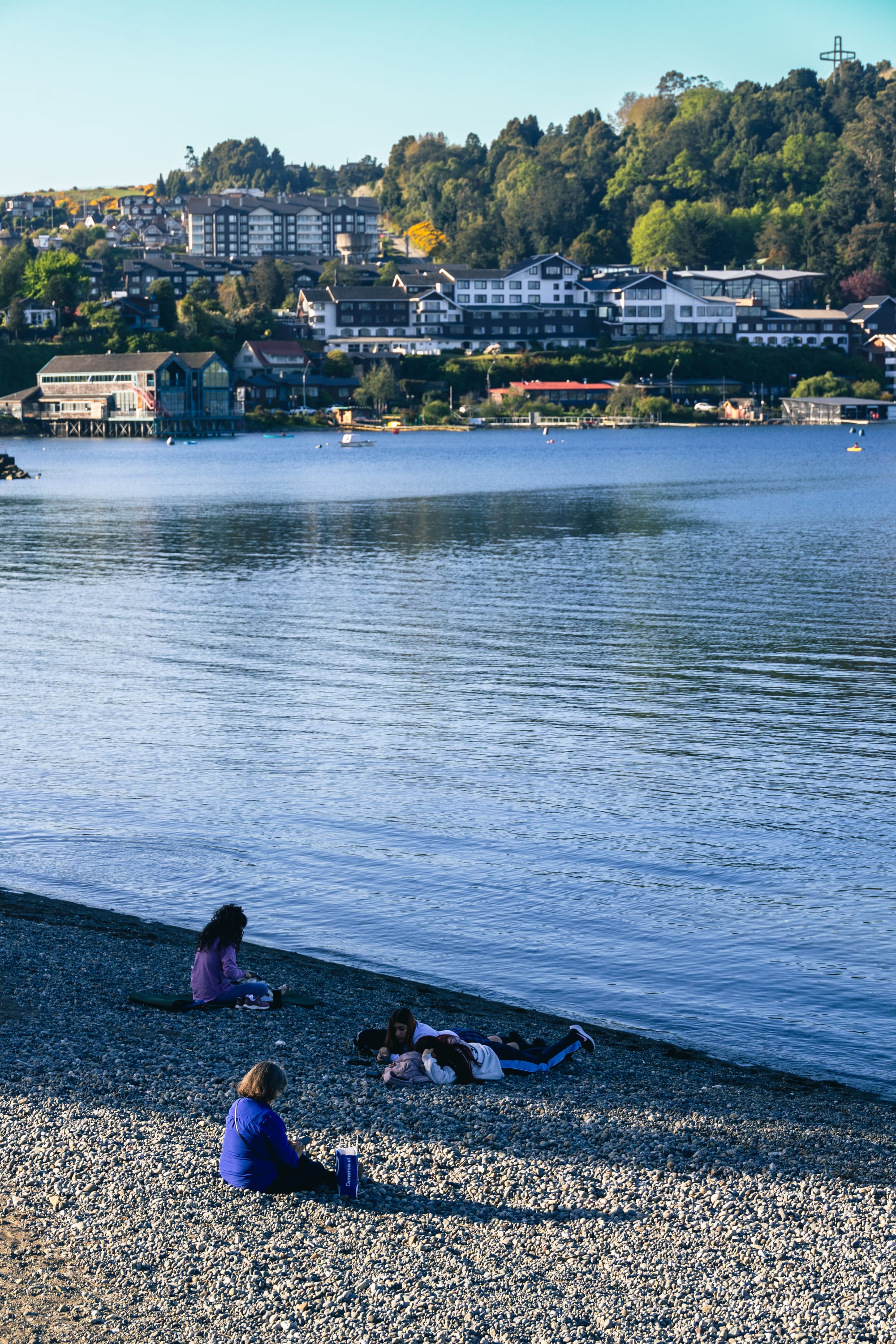 Pero el alma de Puerto Varas es la costanera, que rodea el lago Llanquihue. La playa y el paseo adyacente se llenan de vida durante todo el día. Familias, parejas y viajeros pasean, se tumban en la playa o incluso, los más atrevidos, se dan un baño en el lago. Resulta imposible no detenerse para hacer mil fotografías de la silueta perfecta que nos ofrece el Volcán Osorno. Al menos en esos días que decide no ocultarse tras una persistente neblina.