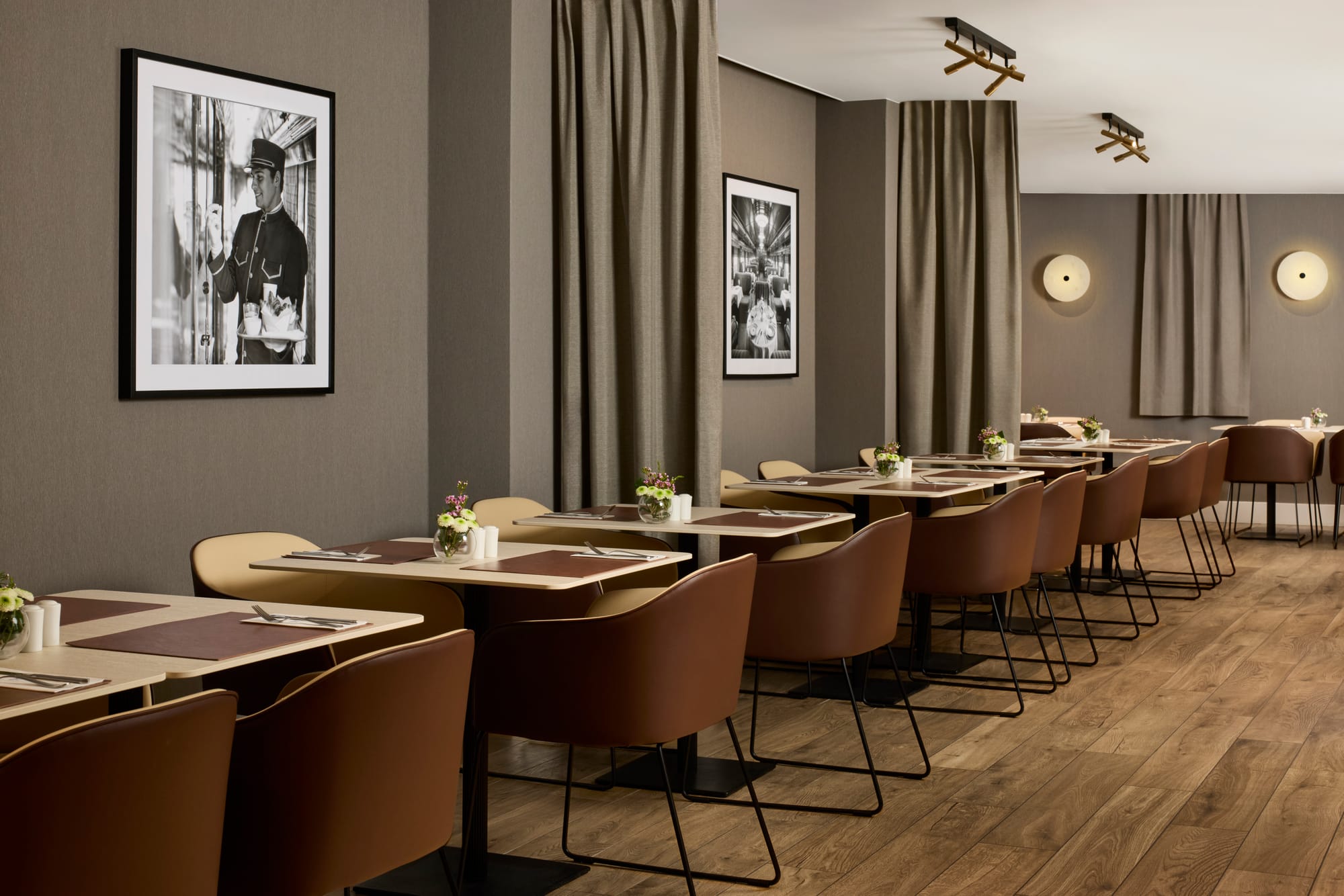 La reforma ha dotado al hotel de 207 habitaciones, incluidas categorías superiores y suites, algunas con balcón. La decoración es moderna y minimalista, pero incorpora guiños gráficos a la historia de la estación y a los grandes trayectos europeos: detalles visuales que convierten cada espacio en una pequeña referencia al imaginario del viaje en tren.