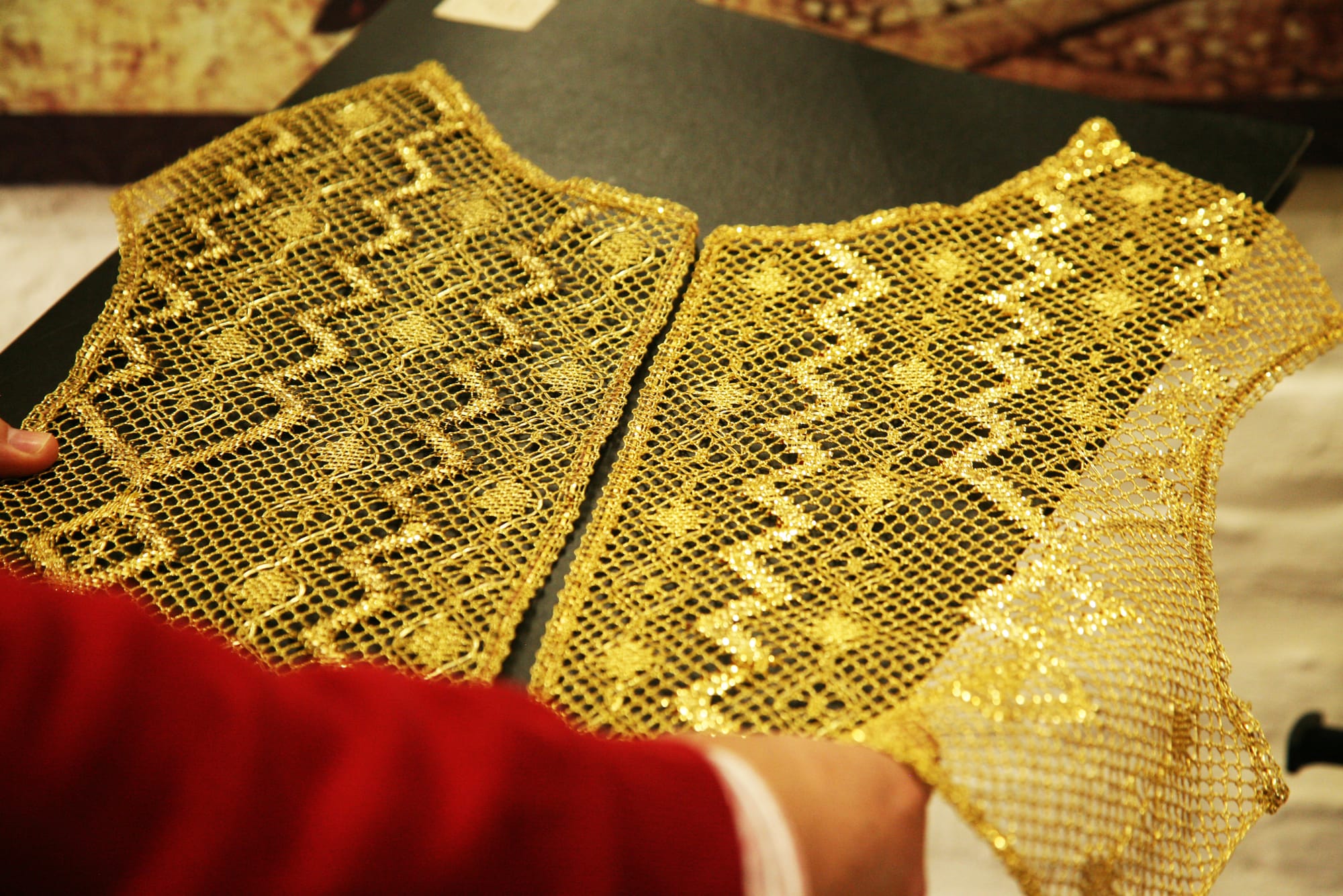 Encaje de bolillos Punto España en hilos de oro y plata