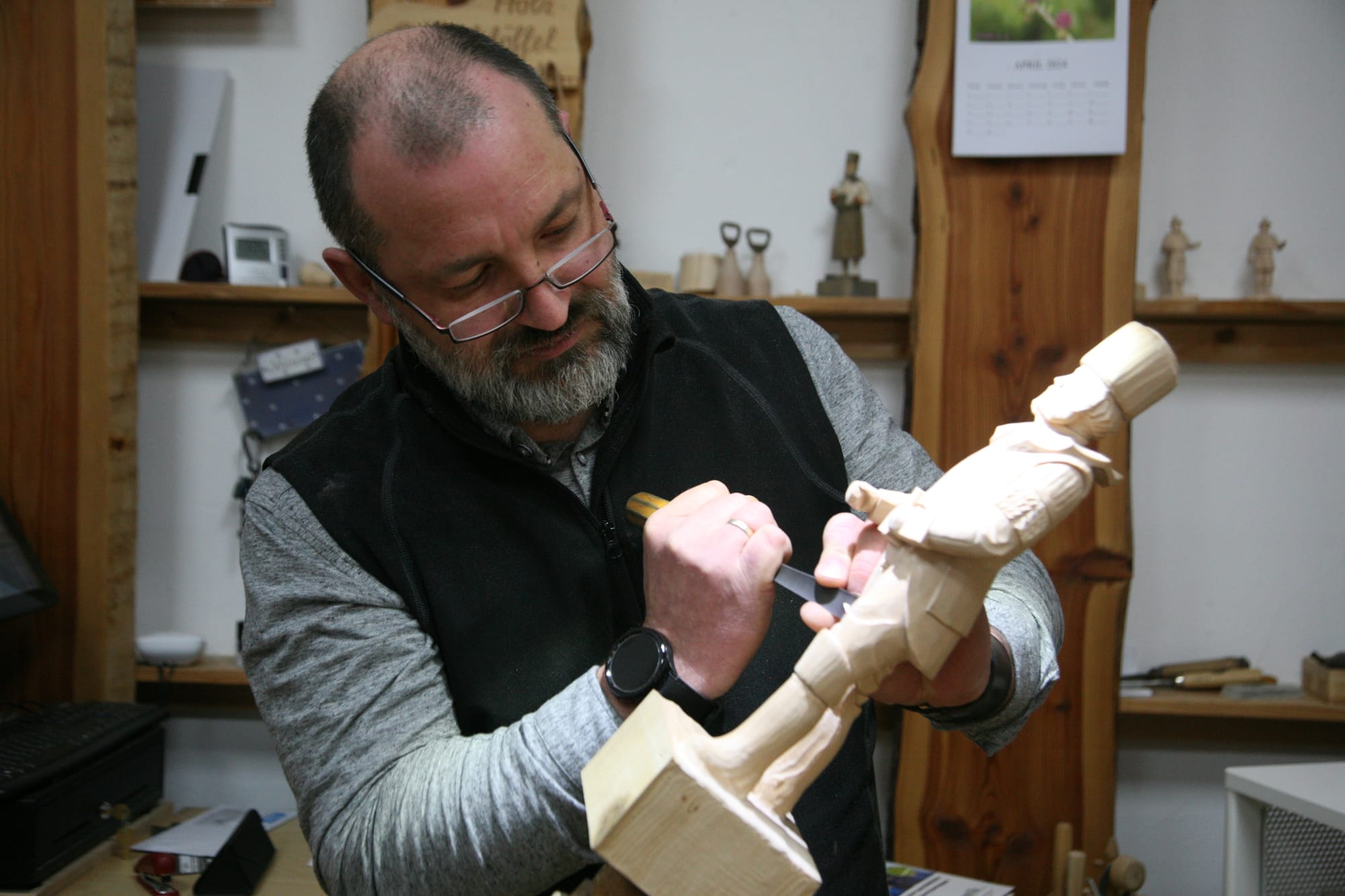 Lars Neubert es un ejemplo del buen hacer en la talla de madera que afama al pueblo sajón. En su taller-tienda Holz & Kunst erleben, Lars Neubert charla con los visitantes sobre un legado que pasa de padres a hijos, mientras trabaja con su cincel el minero de madera, pieza estrella y recurrente de su arte, entre otras tallas que llenan los estantes de su acogedor establecimiento. Le gusta impartir talleres y enseñar a las nuevas generaciones los entresijos de uno de los artes más antiguos de la humanidad.