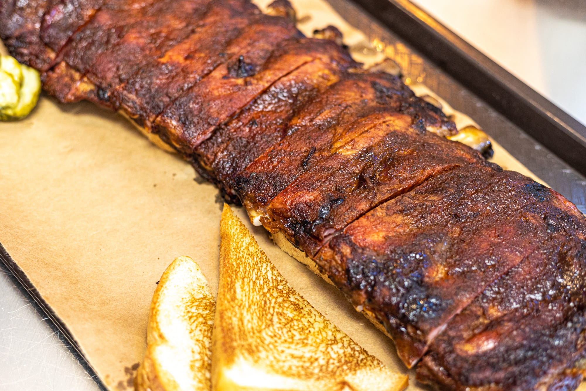 Las costillas al estilo Kansas City, por supuesto, merecen un capítulo aparte. La combinación perfecta de un ahumado lento y profundo, a menudo sobre maderas como el nogal americano o el roble, que impregna cada fibra de la carne, y la caricia de su famosa salsa espesa, dulce y con un toque picante a base de tomate y melaza, que las recubre gloriosamente, creando una capa exterior ligeramente caramelizada. Si aún te queda hueco en el estómago, no te vayas sin probar los “burnt ends”, unos legendarios trozos crujientes por fuera pero increíblemente tiernos y jugosos por dentro, extraídos de la punta más grasa del brisket ahumado.