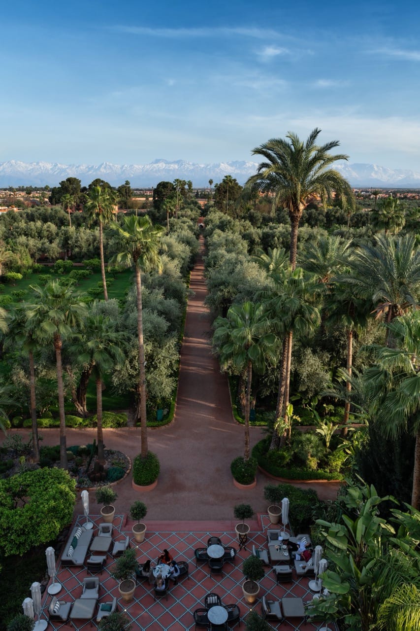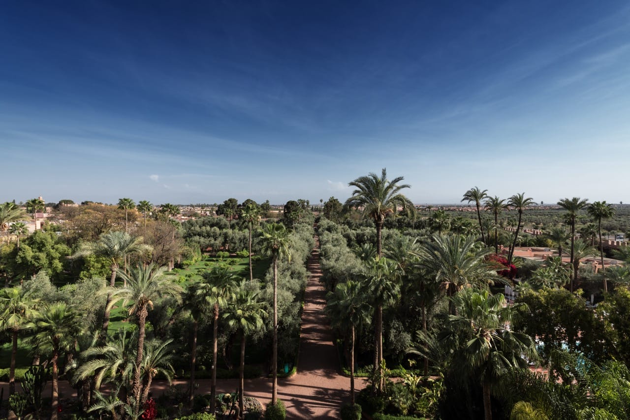 Evocar los Jardins de La Mamounia, un remanso de paz y belleza, es regresar al origen de su leyenda, que comenzó en el siglo XVIII. El príncipe Al Mamoun recibió de su padre, el sultán alauí Sidi Mohammed Ben Abdallah, como regalo de bodas, una vasta finca de trece hectáreas y la convirtió en un lugar célebre por sus nzaha, magníficas recepciones (al tema de la recepción volveré más tarde, porque es importante) al aire libre, dentro de la gran tradición marroquí. Dos siglos más tarde, la sociedad Compagnie des Chemins de Fer du Maroc decidió construir un hotel en este enclave de flora excepcional. Así nació La Mamounia, el que dicen es el único palacio del mundo con nombre femenino.