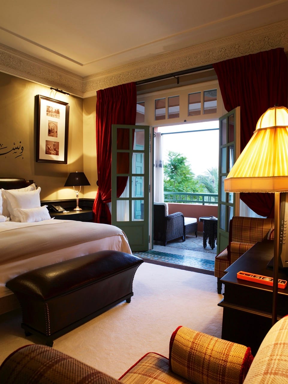Ahora, cuando ya os habéis enamorado de La Mamounia tanto como yo, os puedo hablar un poco más sobre las opciones de alojamiento y sus instalaciones. Las habitaciones y suites combinan artesanía marroquí, elegancia contemporánea y vistas excepcionales. Desde las acogedoras habitaciones Clásicas y Superiores, decoradas con maderas talladas, zelliges tradicionales y tonos serenos, hasta las distintas categorías Deluxe, cada espacio ofrece una atmósfera única con panoramas que abarcan la Koutoubia, los jardines históricos, la piscina o incluso las montañas del Atlas.
