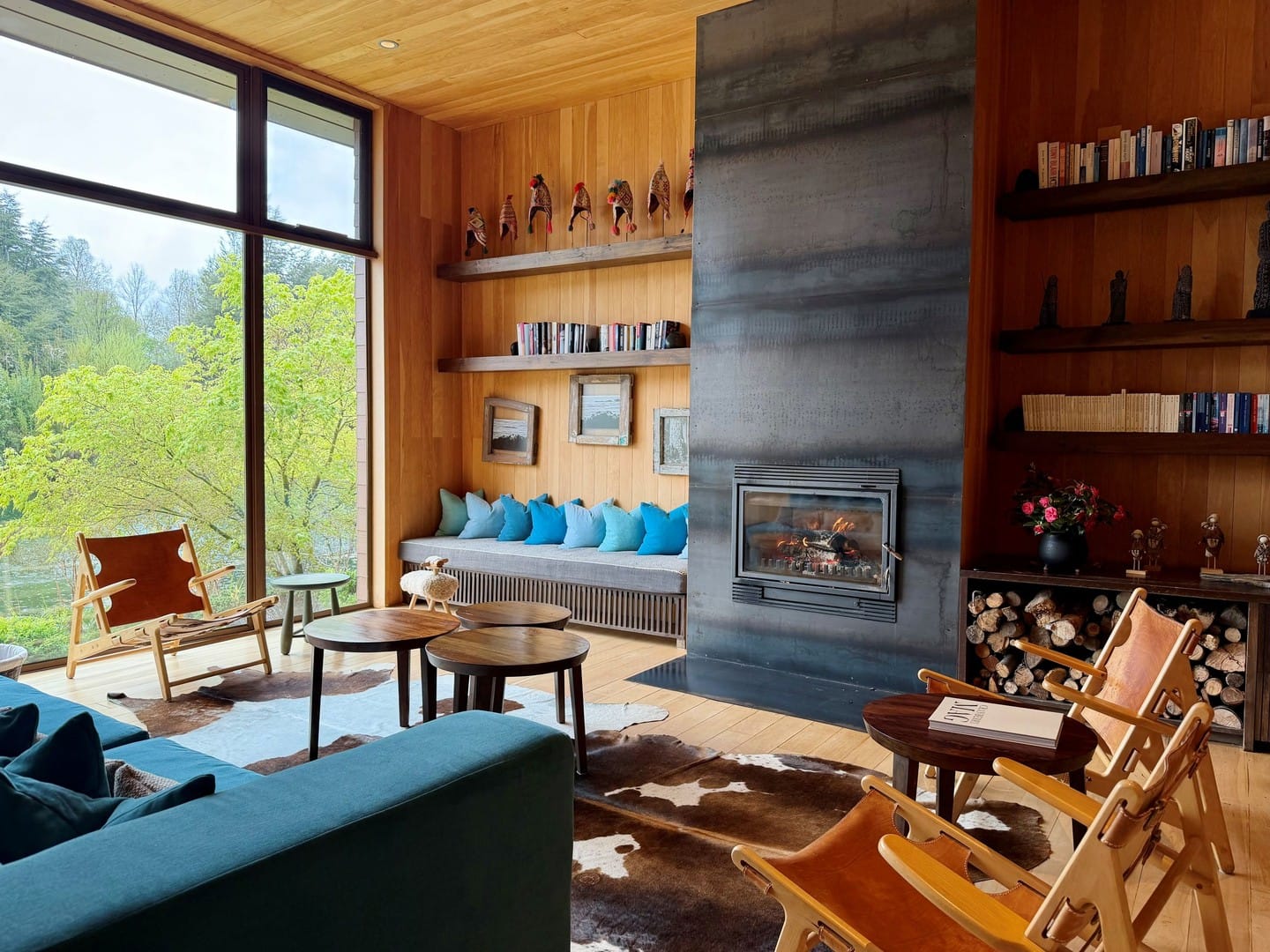 A orillas del río Liucura y frente al volcán Villarrica, &Beyond Vira Vira ocupa una hacienda con huerta orgánica y quesería propia: su cocina es el paradigma farm-to-table en Chile, con menús de temporada, lácteos artesanales y una carta de vinos que marida territorio y técnica. El diseño de suites, villas y la casa principal incorpora textiles y arte mapuche, y el programa de actividades abarca trekking, rafting, pesca con mosca, cabalgatas, kayak, ski invernal e incluso heli-experiencias en la Araucanía andina.