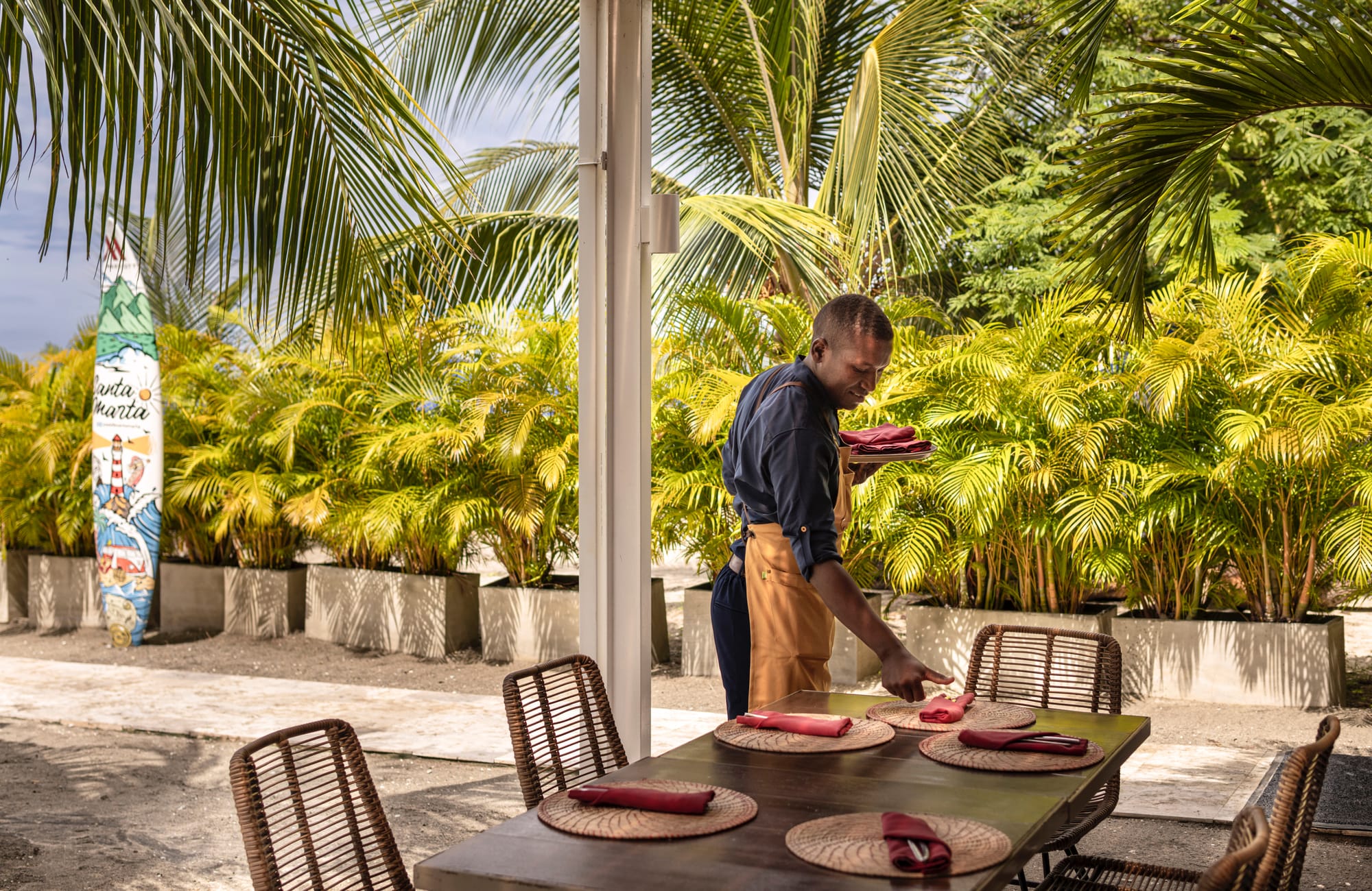Este resort funciona como un observatorio del Caribe colombiano, donde cada detalle técnico, desde el revestimiento geométrico de los muros hasta la gestión de la luz natural en sus habitaciones, cumple la función de situar al huésped en el centro de la cultura samaria. Acompañamos al equipo de Marriott en un viaje a Santa Marta para conocer esta región colombiana y este resort en primera persona.