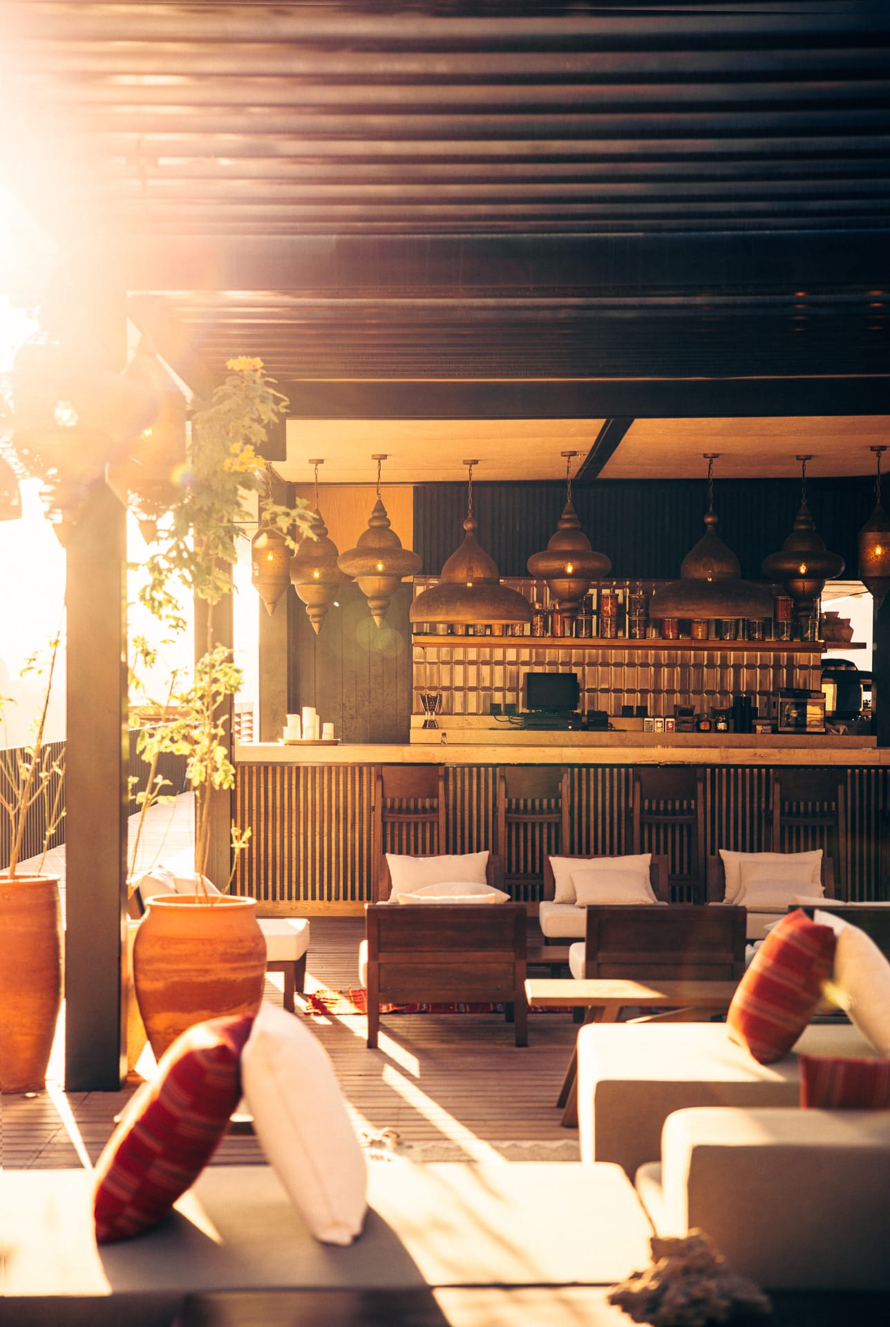 El Ashar Deck Lounge, con sus vistas al valle, es el escenario ideal para el atardecer, ese momento en que los monolitos se vuelven dorados y la luz transforma el paisaje en algo difícilmente descriptible con palabras.