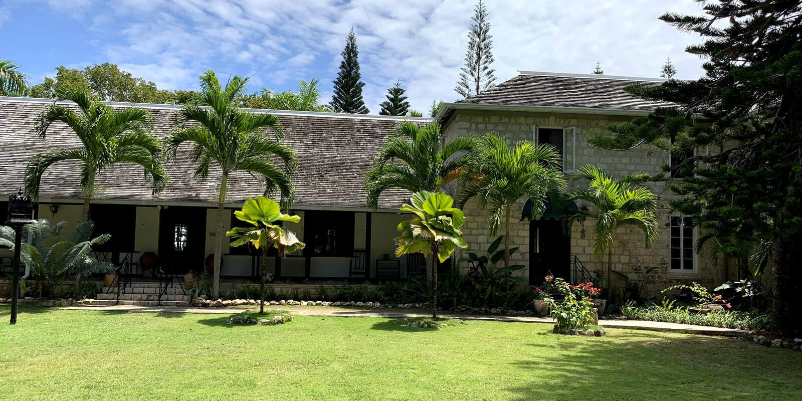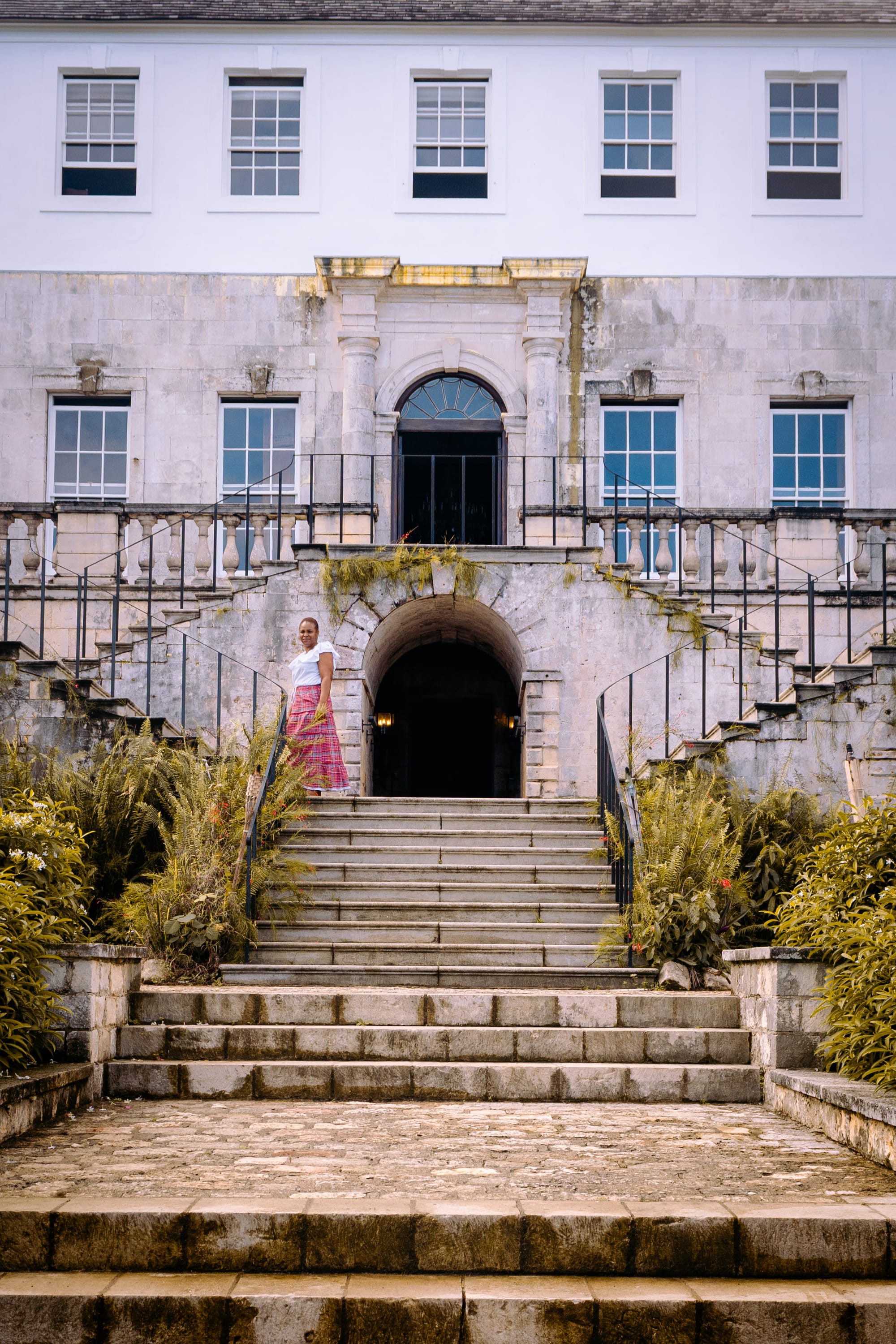 Desde las ventanas se contempla el paisaje que rodeaba la plantación, antiguamente cubierto de caña de azúcar hasta donde alcanzaba la vista. La guía señala el trazado recto que conducía hasta la costa, por donde llegaban los barcos para cargar azúcar, ron y especias rumbo a Inglaterra. En la distancia se distinguen restos de un antiguo acueducto que abastecía de agua a la propiedad desde una cascada cercana.