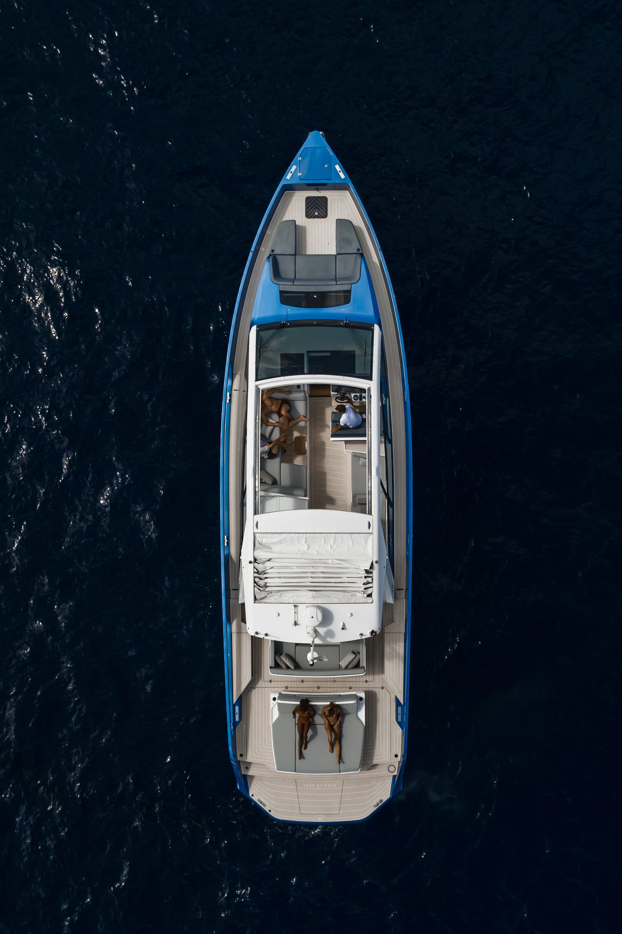 El modelo, lanzado en 2022 y perfeccionado en los últimos dos años, representa la aplicación más avanzada de la propulsión eléctrica en la náutica de lujo. Su nombre —Deep Silence— resume la experiencia que ofrece: una navegación silenciosa, sin vibraciones ni emisiones, donde solo se escucha el sonido del viento y las aves sobre el mar.