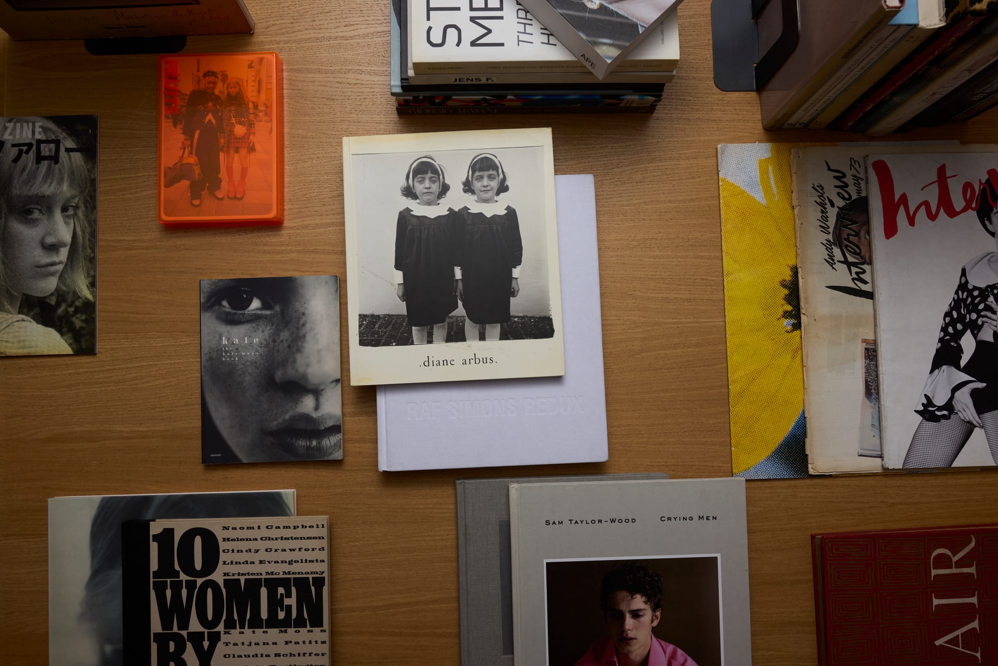 Los estantes de The MOP Library reúnen libros, revistas y catálogos que trazan un recorrido exhaustivo por la moda y su imagen desde finales del siglo XX hasta la actualidad. Entre sus fondos se encuentran colecciones extensas de monografías de fotógrafos de primer nivel, como Richard Avedon, Nan Goldin o Tim Walker, figuras que han definido la manera en que entendemos la imagen de moda contemporánea.