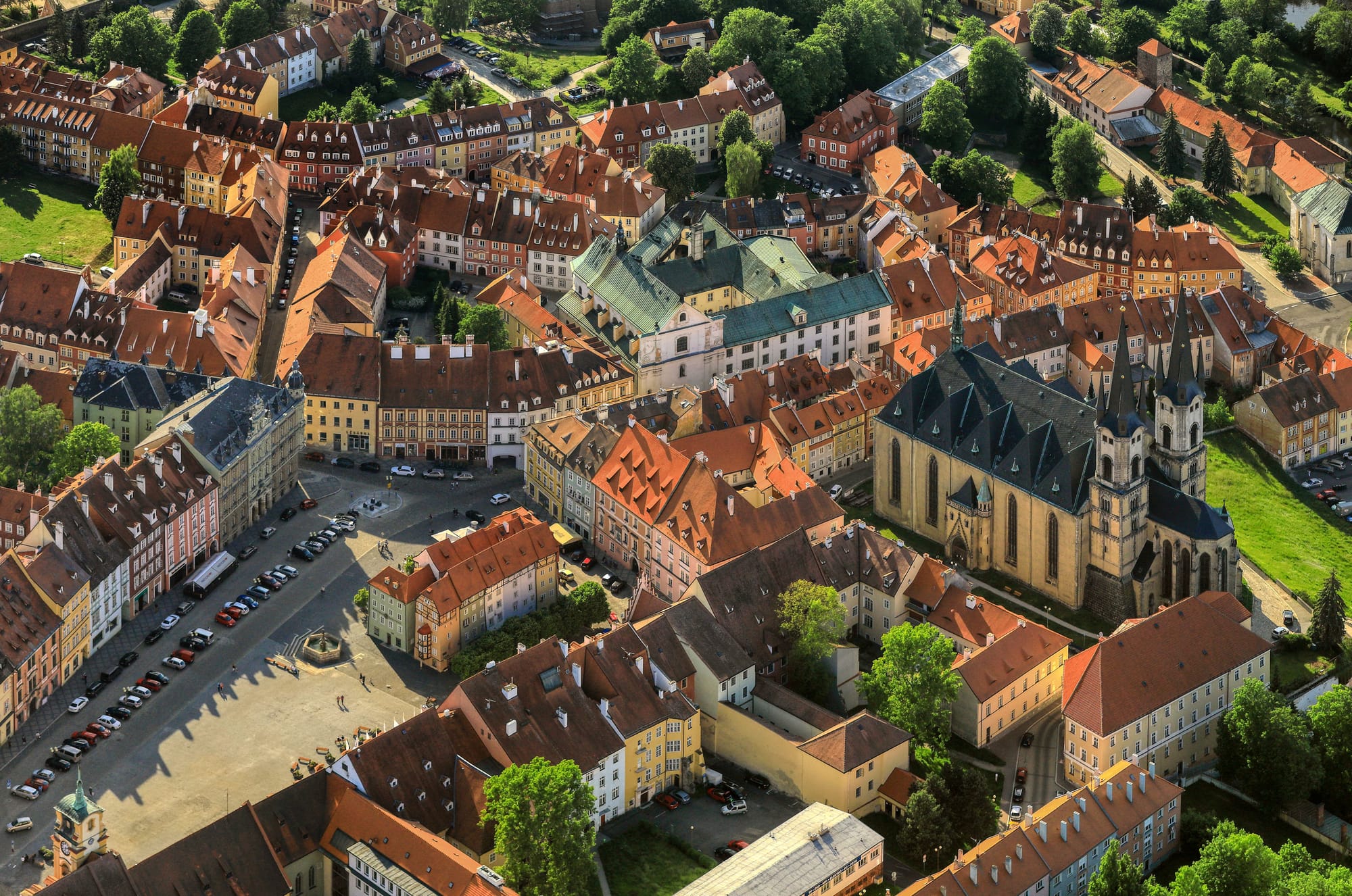 Desde aquí seguimos, ahora sí, hacia Pilsen (Plzeň), la gran ciudad de Bohemia del Oeste. Llegamos a la Plaza de la República, con la catedral de San Bartolomé presidiendo el espacio. Su torre, la más alta de Chequia, nos invita a subir. Si nos animamos a escalar sus 301 escalones, tendremos una vista panorámica de los tejados, las chimeneas industriales y el campanario recortado contra el cielo.