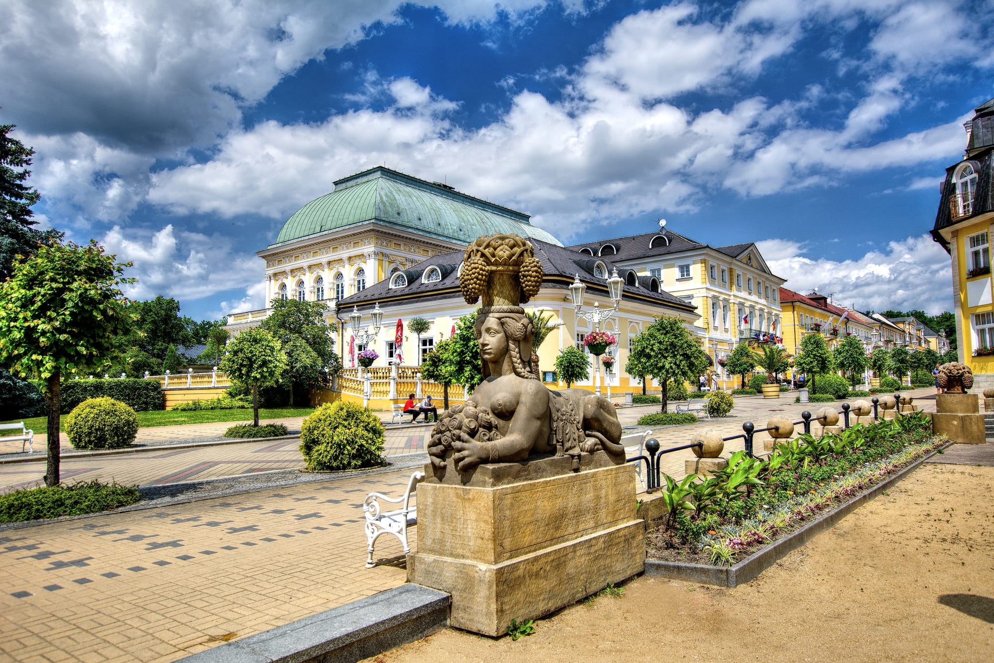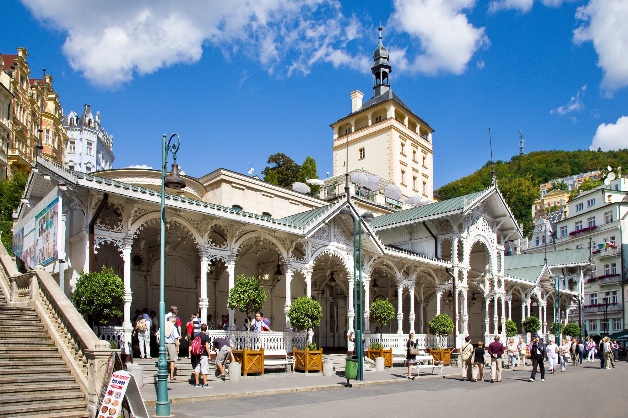 Esta ciudad es famosa por sus más de cuarenta manantiales minerales, su tradición balnearia centenaria y por haber atraído a grandes figuras históricas como Goethe, Chopin, Kafka o el rey Eduardo VII. Una vez allí, podemos pasear por el parque hasta llegar a la Colonnade Principal, una estructura metálica de finales del XIX con techo de hierro y cristal donde el eco de los pasos parece formar parte de la arquitectura. Muy cerca, la Fuente Cantante ofrece un breve espectáculo de agua y música cada dos horas.