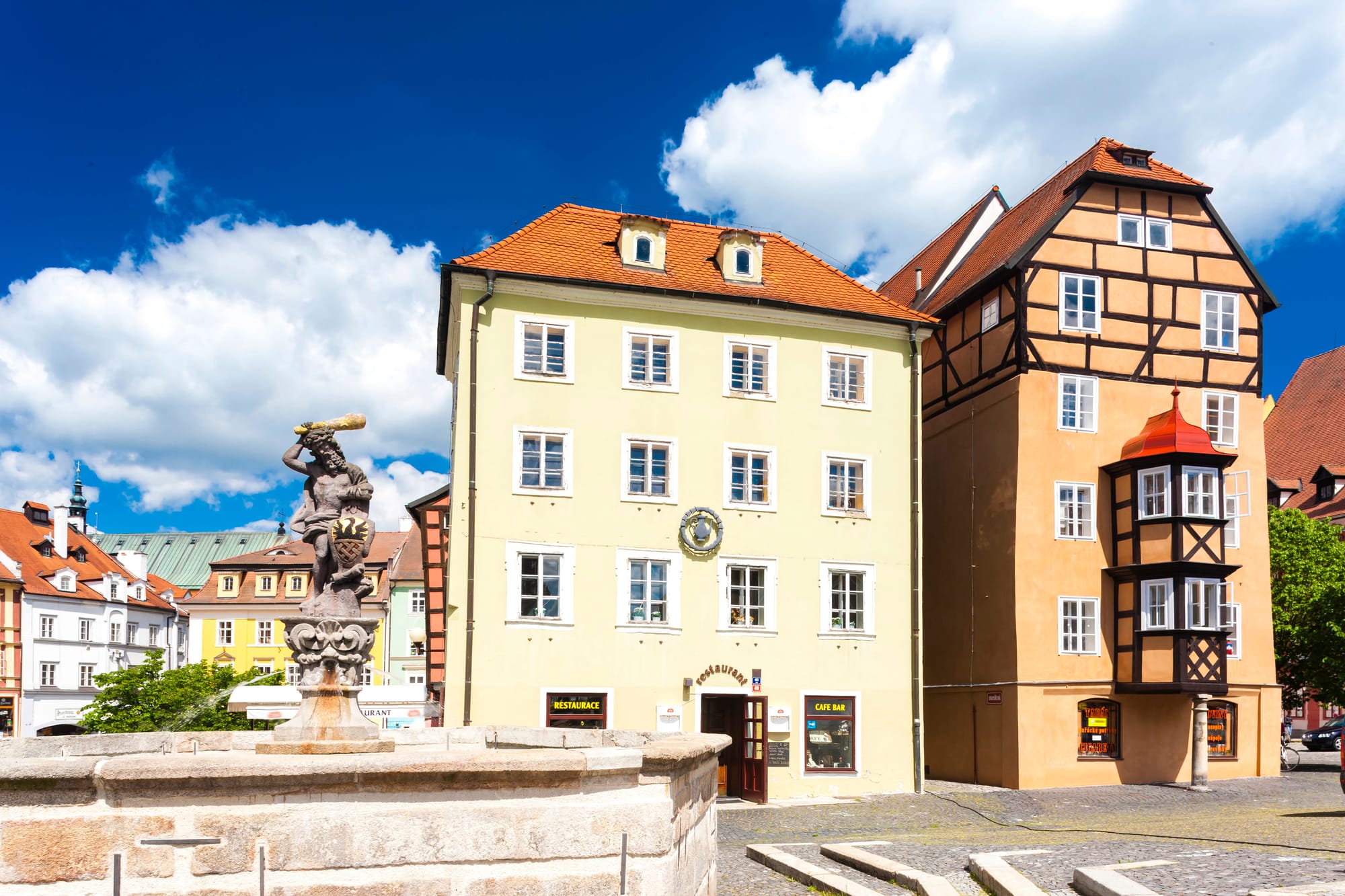 Hoy ponemos rumbo al extremo más occidental del país. La primera parada es Cheb, una de las ciudades históricas más importantes de la región, con un centro que conserva la huella medieval en fachadas, plazas y callejuelas. En la Plaza del Mercado nos detenemos frente al Špalíček, un grupo de casas estrechas del siglo XIII separadas por un callejón mínimo. Subimos hacia el castillo de Cheb, con su torre negra y la capilla románica, y desde lo alto entenderemos la posición estratégica de esta ciudad fronteriza.