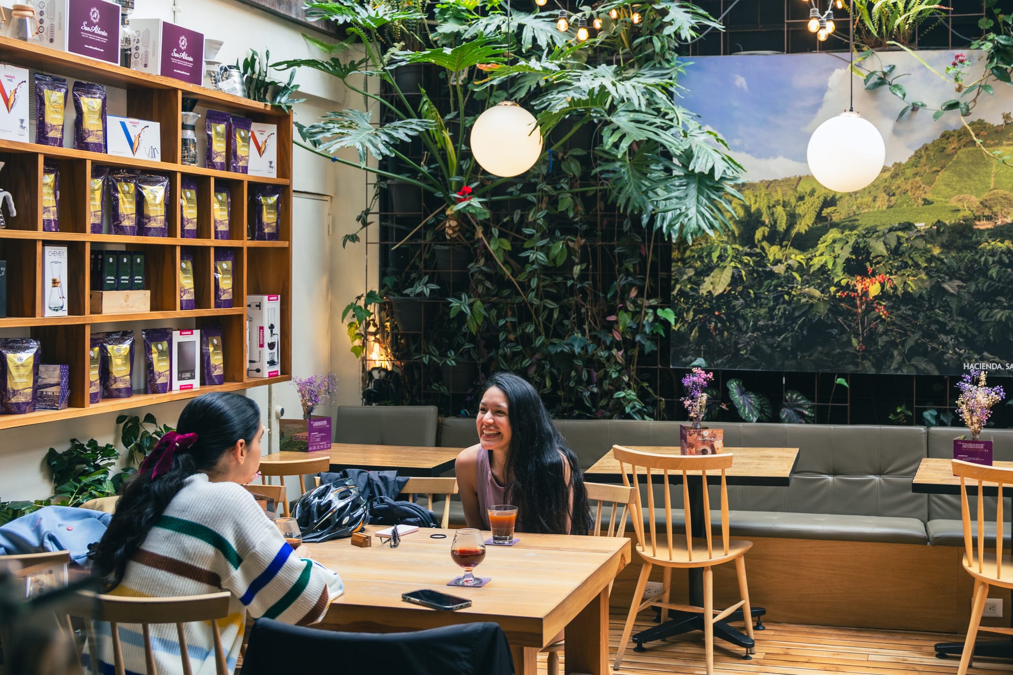 La experiencia de cata lenta molecular que ofrecen, reservable con antelación, lleva ese concepto un paso más allá. No es solo beber café, es entender por qué ese café sabe como sabe y qué decisiones tomó alguien en una ladera del eje cafetero para que llegue así a la taza. Las paredes del local nos recuerdan la finca de origen, con plantas de café en distintos estadios de crecimiento que hacen las veces de explicación visual del proceso. Inevitable quedarse más de lo previsto.