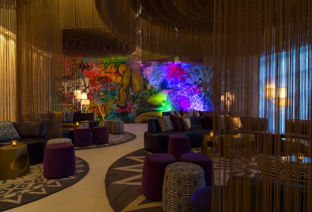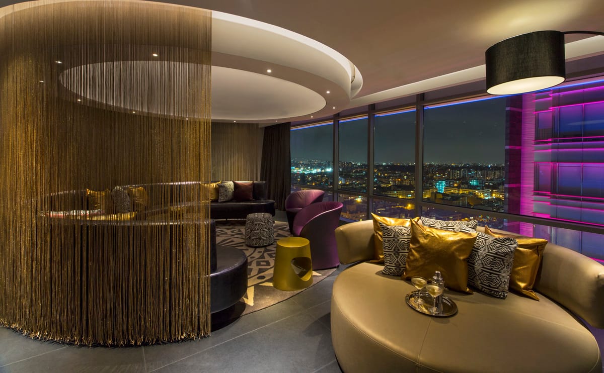 En Usaquén, el W Bogotá funciona como un hotel urbano con narrativa propia, de esos que entienden la ciudad y también el tipo de viajero que llega a ella. Su identidad visual gira en torno al mito de El Dorado y se nota desde el primer momento. El interiorismo fue concebido por el estudio neoyorquino Studio Gaia, dirigido por Ilan Waisbrod, con referencias directas a la laguna de Guatavita y a la idea de ofrenda, traducidas a un lenguaje contemporáneo de texturas geométricas, luz cálida y guiños dorados en lobby, pasillos, habitaciones y zonas comunes. En el Welcome Desk, los mostradores evocan balsas doradas y en el W Lounge aparecen hilos suspendidos que sugieren las ofrendas en el fondo del agua. Un mural de Vértigo Graffiti remata la historia con una lectura más emocional del mito.