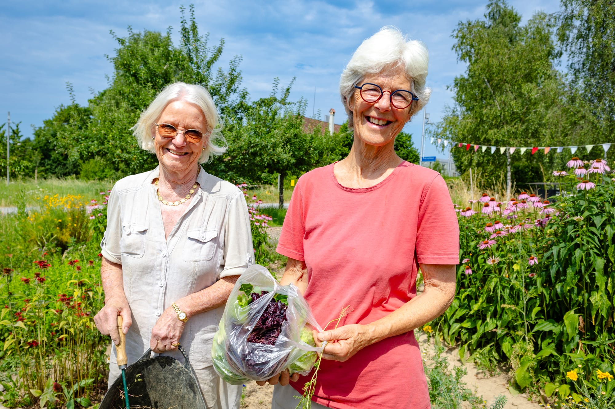 Eva y Michelle cultivan sus propios vegetales en el huerto comunitario Fruchtland - Foto: Christian rojo